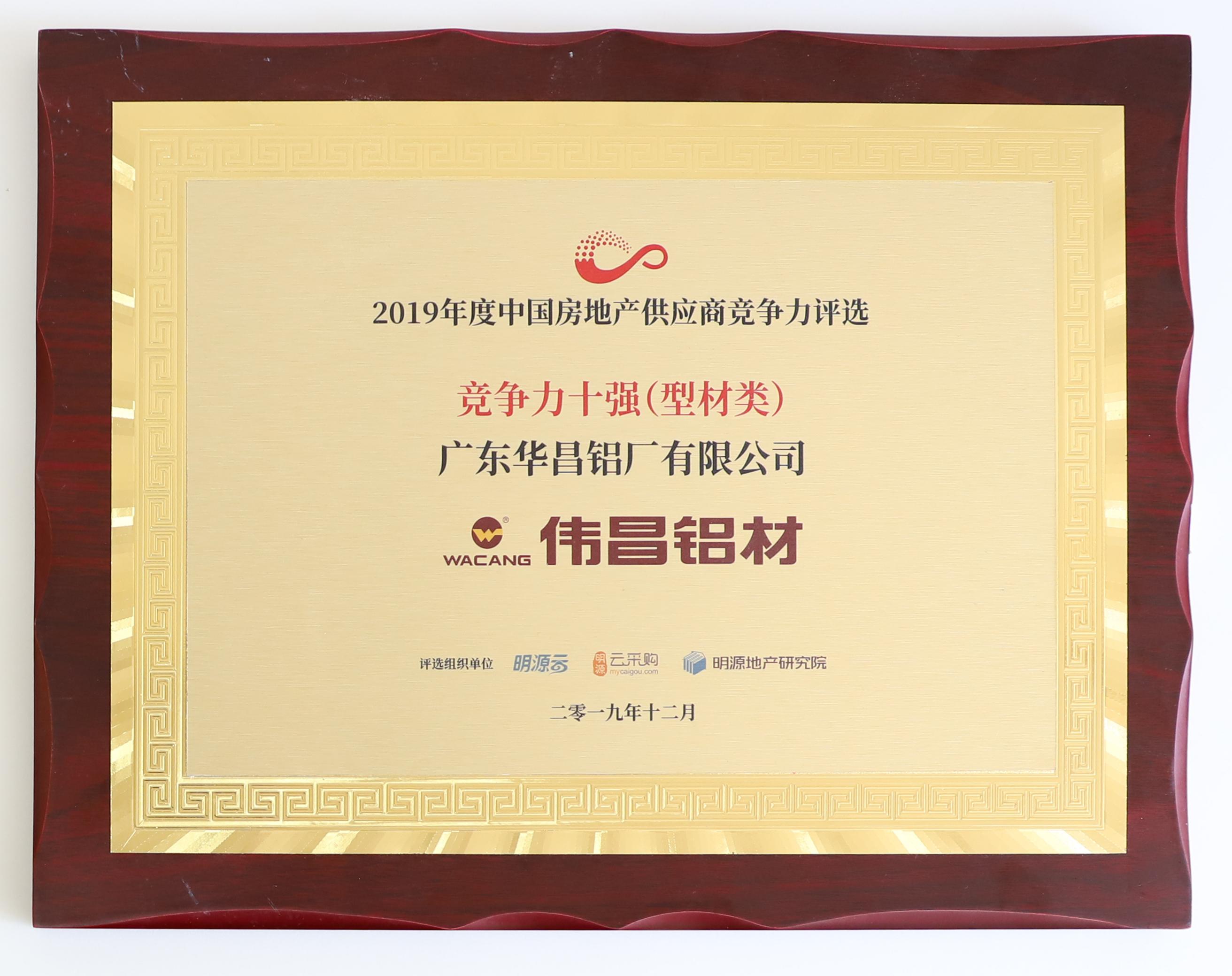 2020中國房地產(chǎn)開發(fā)企業(yè)500強首選供應商鋁型材類 |
