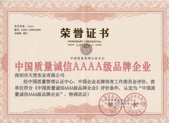 中國質(zhì)量誠信AAAA級品牌企業(yè) |