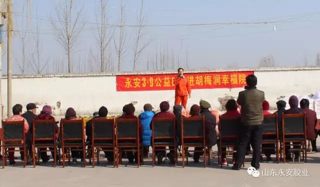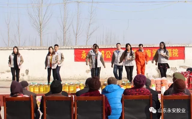 敬老獻愛心,溫情暖人心。3月9日永安公益日,山東永安膠業愛心志愿者在副總經理劉建永、肖傳強的率領下走進臨朐胡梅澗幸福院,開展“春暖幸福院,夕陽格外紅”愛心活動,為幸福院的老人送去了初春的溫暖。
