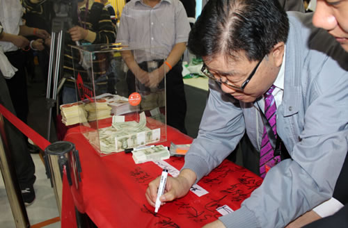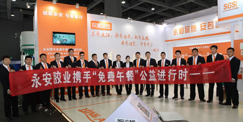 創(chuàng)新,讓公益觸手可及 3月18日至20日,全國鋁門窗幕墻行業(yè)年會在廣州保利世貿(mào)博覽館盛大開幕。永安膠業(yè)攜手“免費午餐”公益活動走進廣州展,以此呼吁鋁門窗幕墻兄弟企業(yè)共同關注公益事業(yè)。 本次公益活動以“套圈圈”游戲形式展現(xiàn),旨在讓大家體驗活動的過程中提升自己的社會責任感,為社會公益活動奉獻自己的一份愛心。 經(jīng)過永安“免費午餐”志愿者三天的不懈努力,截止到20日,活動共籌集1497份免費午餐,近2300余人參加到“免費午餐”行動中來。 會長點贊,號召愛心傳遞 廣州展“免費午餐”活動開展當天,中國建筑金屬結(jié)構(gòu)協(xié)會原會長姚兵、新會長郝際平、鋁門窗幕墻委員會主任黃圻、山東省住房和城鄉(xiāng)建設廳原副廳長張俊乾、山東省建設機械協(xié)會管理辦公室主任張永光等行業(yè)領導在百忙之中也熱心參與到我們的活動中來。各位領導在活動主題條幅上一一簽名、捐款并佩戴了“結(jié)膠永安與愛童行”愛心手環(huán),為中國的公益事業(yè)奉獻上自己的一片愛心。 姚兵會長高度評價了本次公益活動的開展,他說:“永安膠業(yè)展會期間舉辦的‘免費午餐’活動形式是一種很好的創(chuàng)新,需要大家共同學習,值得點贊。作為企業(yè),永安在發(fā)揮行業(yè)領軍作用的同時能夠勇于擔當社會責任,是擁有大企業(yè),愛心企業(yè)胸懷的。希望未來有越來越多的企業(yè)能夠加入到公益隊伍中來,共同關愛社會,回饋社會。”