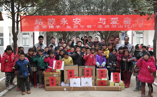 記者日前獲悉,作為中國硅酮膠行業(yè)五大領軍企業(yè)、2015房地產(chǎn)500強首選供應商五強企業(yè)的山東永安膠業(yè)有限公司宣布將每年的3月9日設立為“永安公益日“,由此永安膠業(yè)成為硅酮膠行業(yè)設立公益日的首家企業(yè)。此善舉不但得到了社會各界人士的熱心參與,更得到了中國建筑金屬結(jié)構(gòu)協(xié)會原會長姚兵“點贊”。 永安公益日的由來: 信陽公益:山東河南一家親千里助學暖人心 3月8日,一輛滿載著“愛的禮物”的汽車從山東臨朐永安總部駛向千里之外的信陽。3月9日,永安志愿者走進龍井鎮(zhèn)洪山村小學,永安膠業(yè)“結(jié)膠永安 與愛童行”“免費午餐”助學活動圓滿完成。 信陽公益志愿者聯(lián)合會負責人河山感慨說道:“山東河南一家親,千里助學暖人心。” 永安公益日,我們在行動 永安“免費午餐”志愿者信陽之行惠及洪山村小學五個年級共110多名山區(qū)兒童,他們收到了永安“免費午餐”志愿者精心準備的新年禮物以及學校建校以來第一套全新的電教設備。此時,正值2015年全國“免費午餐”開餐之日,永安膠業(yè)總經(jīng)理楊坤宣布把每年的“3月9日”定為“永安公益日”,號召每年的今天,全體永安人放下手中的工作,積極行動起來,為社會公益事業(yè)奉獻自己的一份愛心。