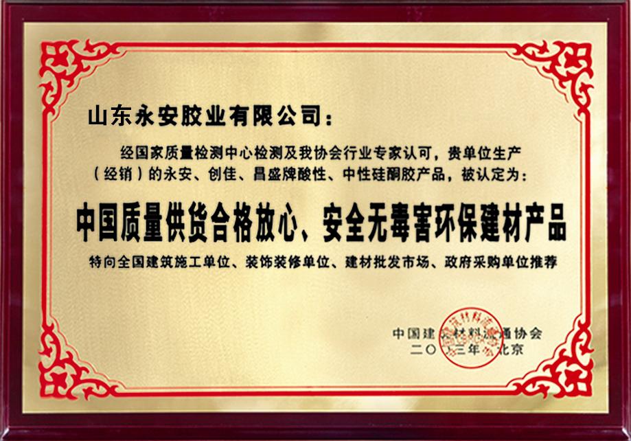 證書名稱: 中國(guó)質(zhì)量供貨合格放心、安全無毒害環(huán)保建材產(chǎn)品