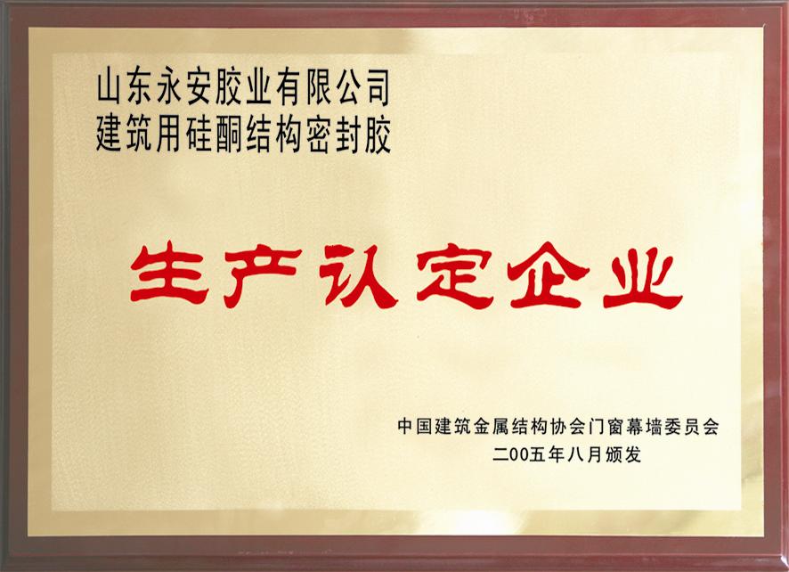 證書名稱: 建筑用硅酮結(jié)構(gòu)密封膠生產(chǎn)認(rèn)定企業(yè)