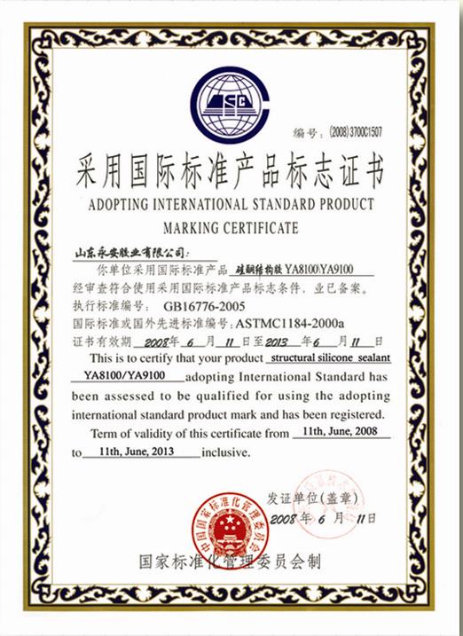證書名稱: 推薦產(chǎn)品 YA6100硅酮耐候膠