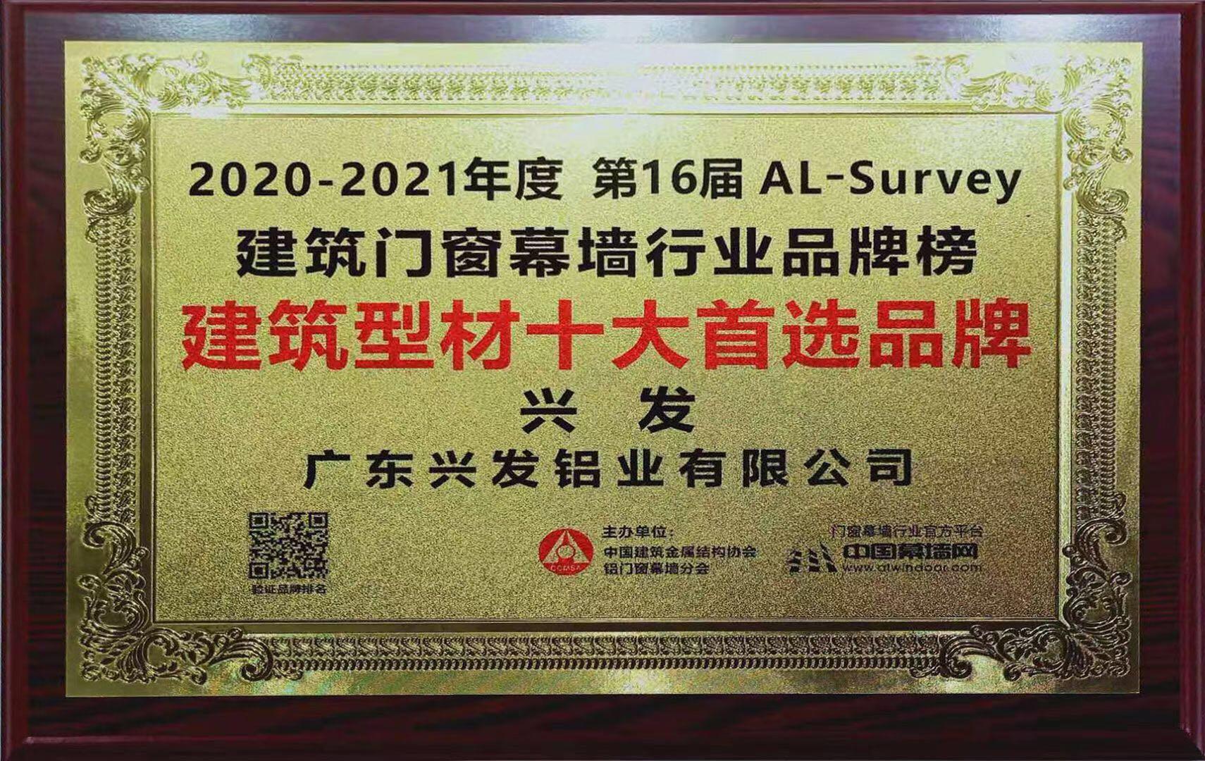 2020-2021年度建筑門窗幕墻行業(yè)品牌榜建筑型材十大首選品牌 |