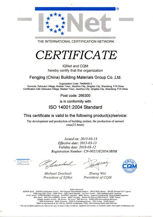 環境體系-國際認證聯盟證書 |