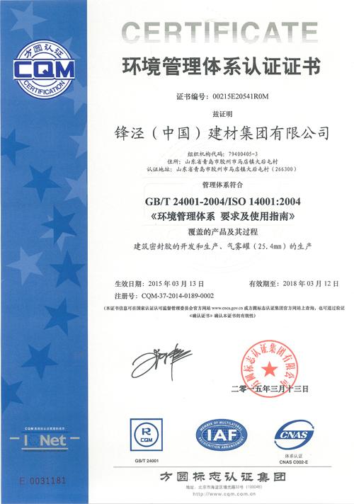 環境管理體系認證證書 |