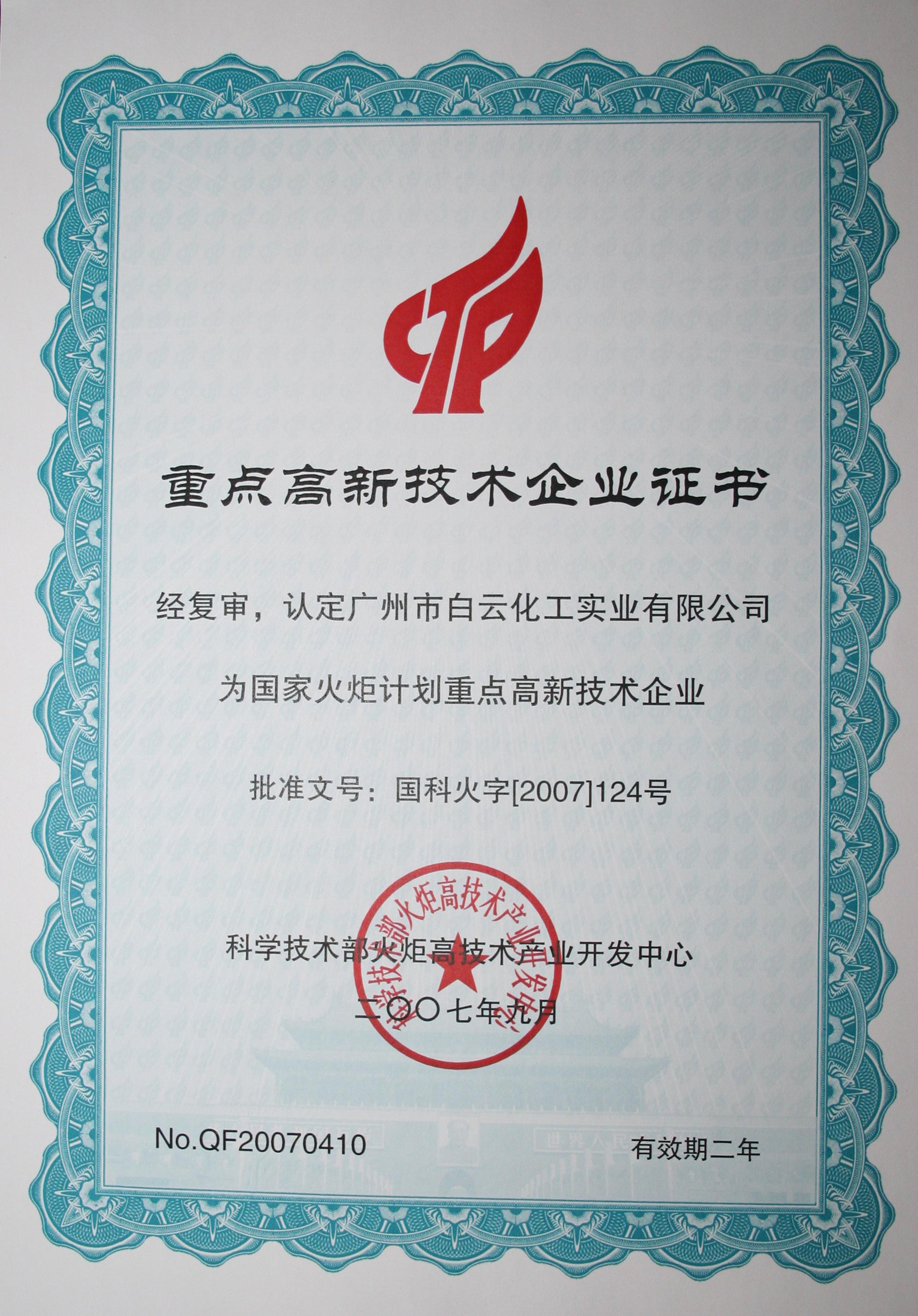 國家重點高新技術企業 |
