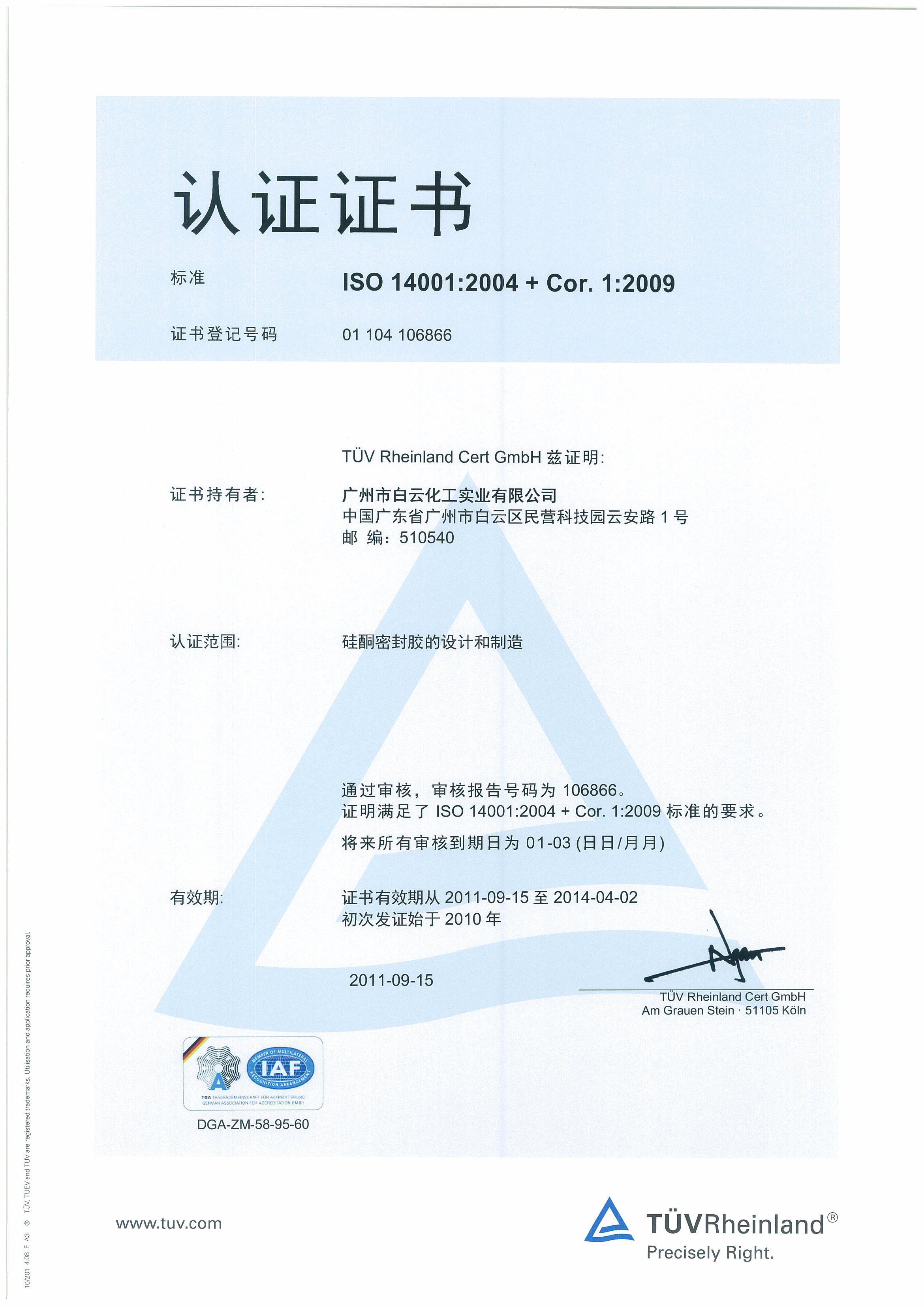 14001體系最新證書 |