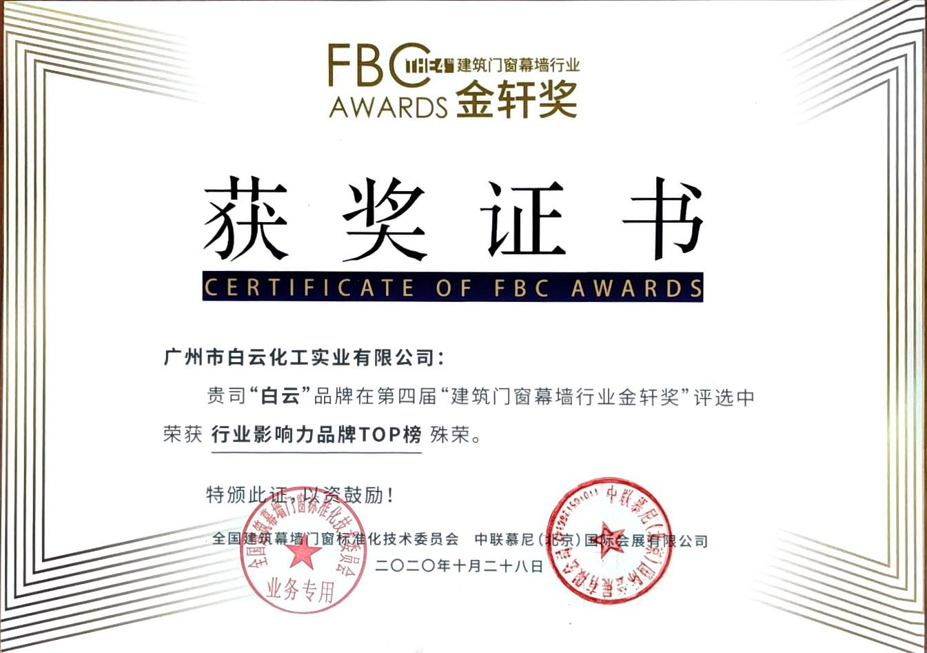 第四屆“建筑門窗幕墻行業金軒獎”行業影響力品牌TOP榜 |
