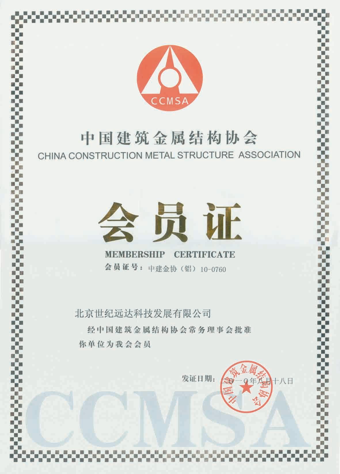證書名稱: 中國建筑金屬結(jié)構(gòu)協(xié)會(huì)會(huì)員證書