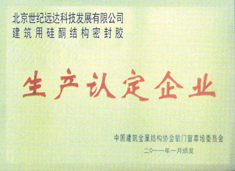 證書名稱: 建筑用硅酮結(jié)構(gòu)密封膠生產(chǎn)認(rèn)定企業(yè)