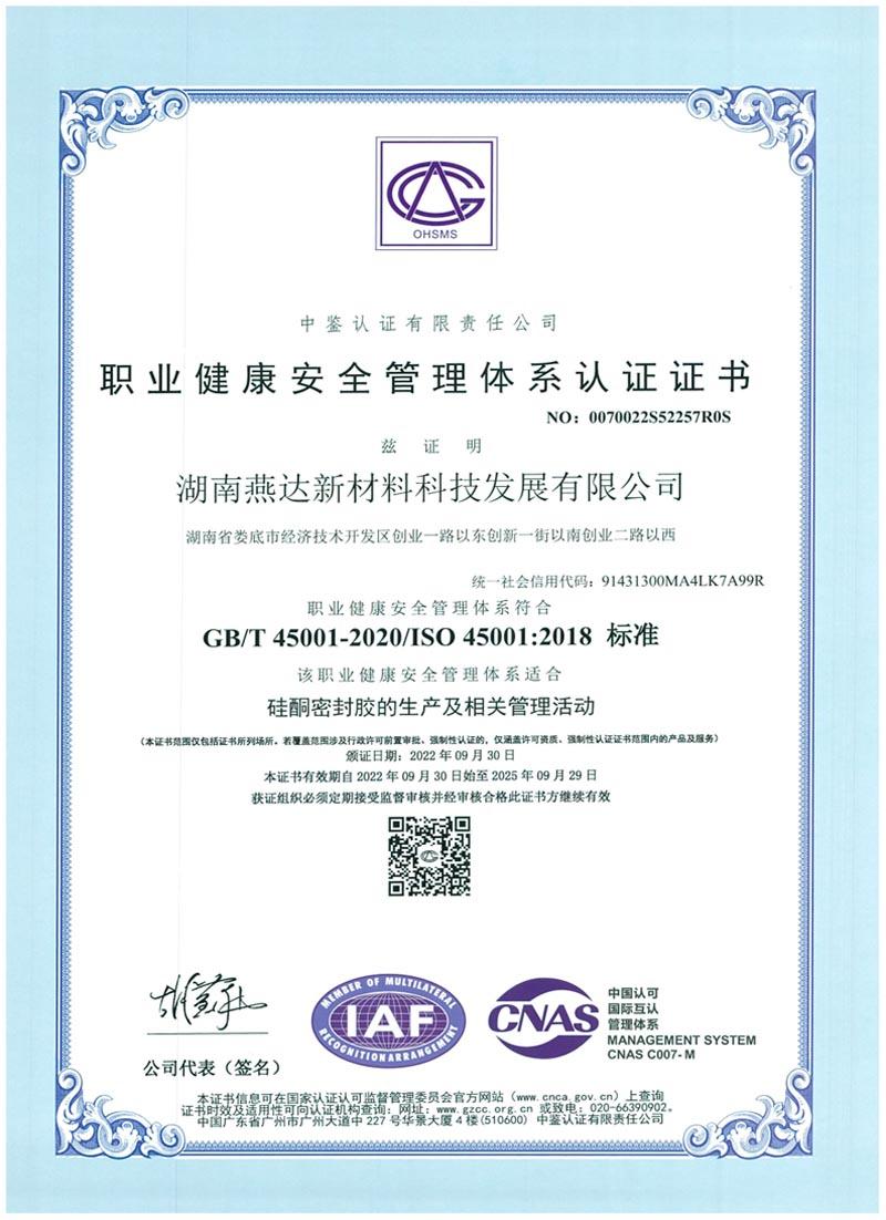 證書名稱: 職業(yè)健康安全管理體系認(rèn)證證書
