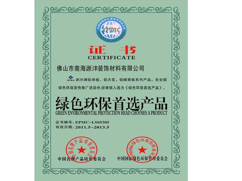 證書名稱: 綠色環保首選產品