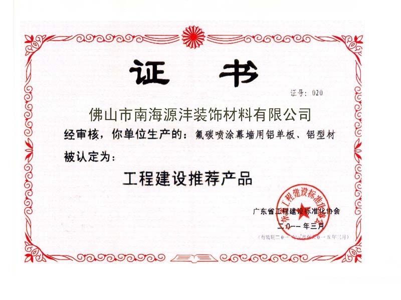證書名稱: 工程建設推薦產品