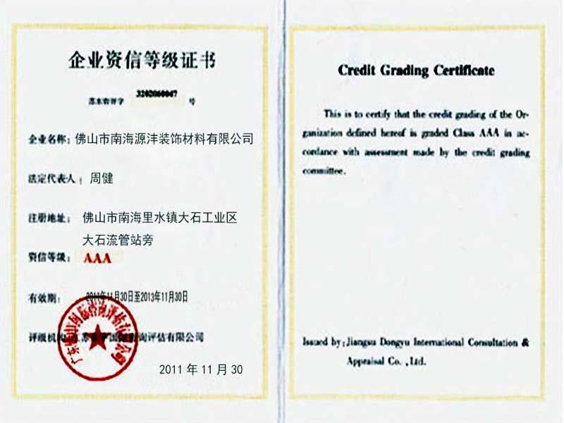 證書名稱: 企業資信等級證書