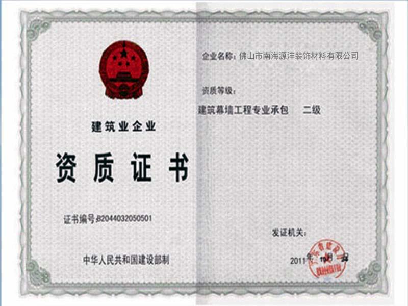 證書名稱: 建筑業企業資質證書