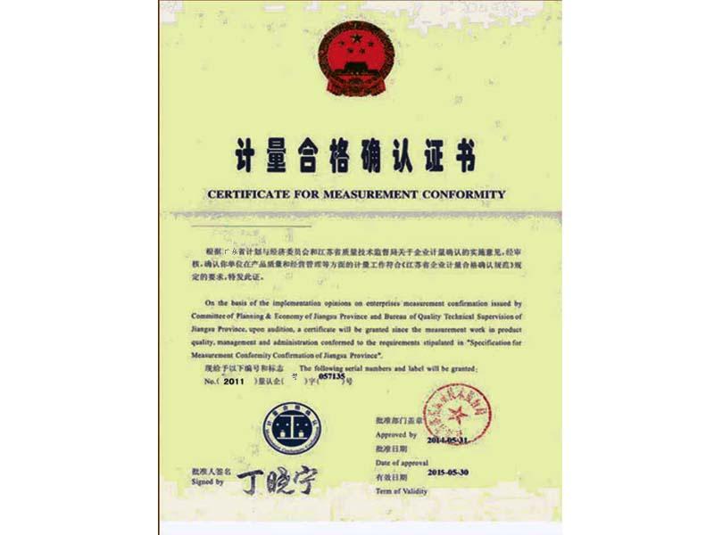 證書名稱: 計量合格確認證書
