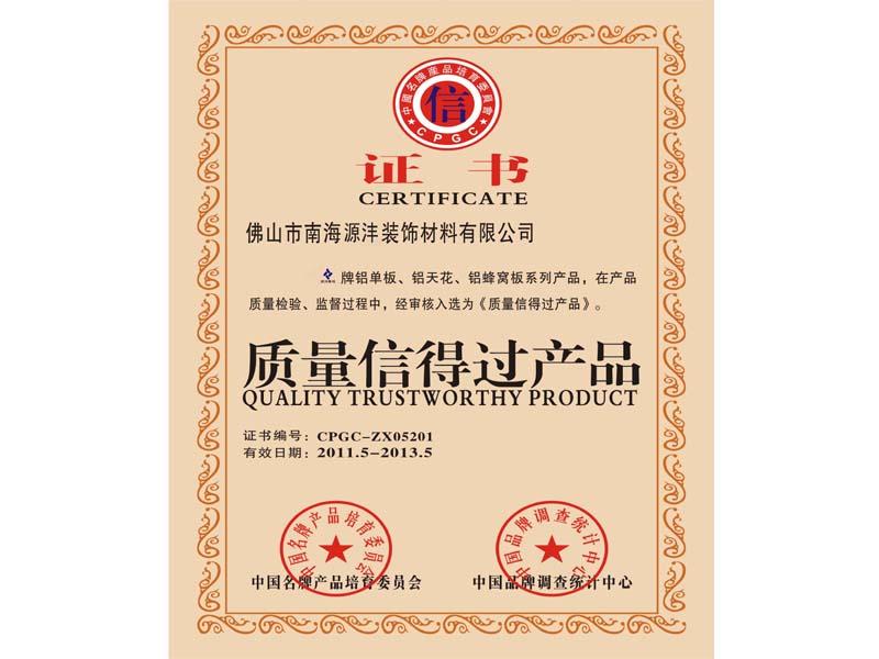 證書名稱: 質量信得過產品