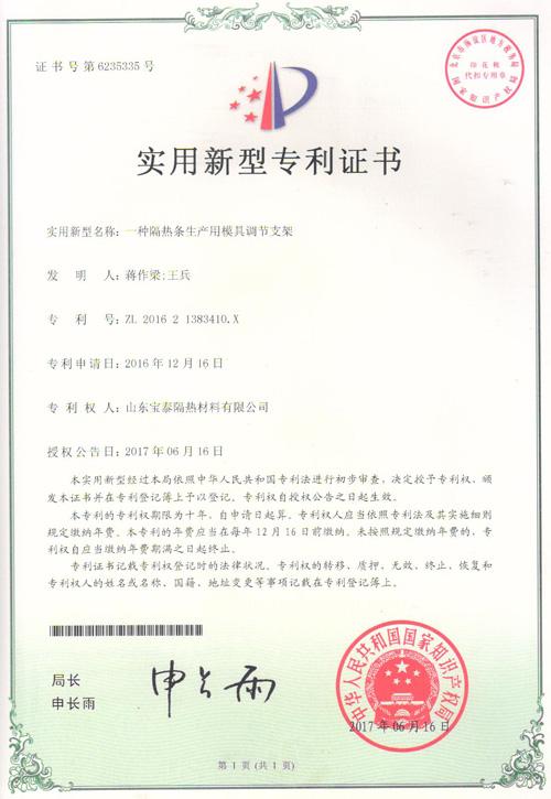 實用新型專利-一種隔熱條生產(chǎn)用模具調(diào)節(jié)支架 |
