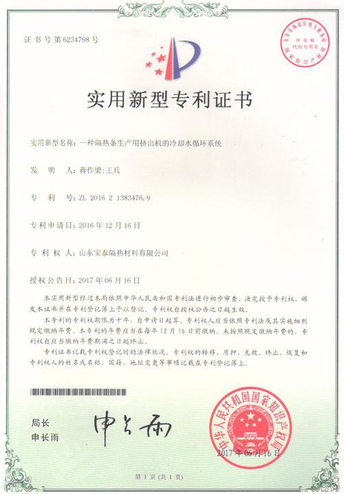 實用新型專利-一種隔熱條生產(chǎn)用擠出機的冷卻水循環(huán)系統(tǒng) |