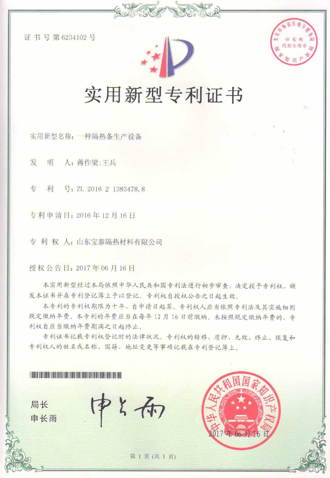 實用新型專利-一種隔熱條生產(chǎn)設(shè)備 |
