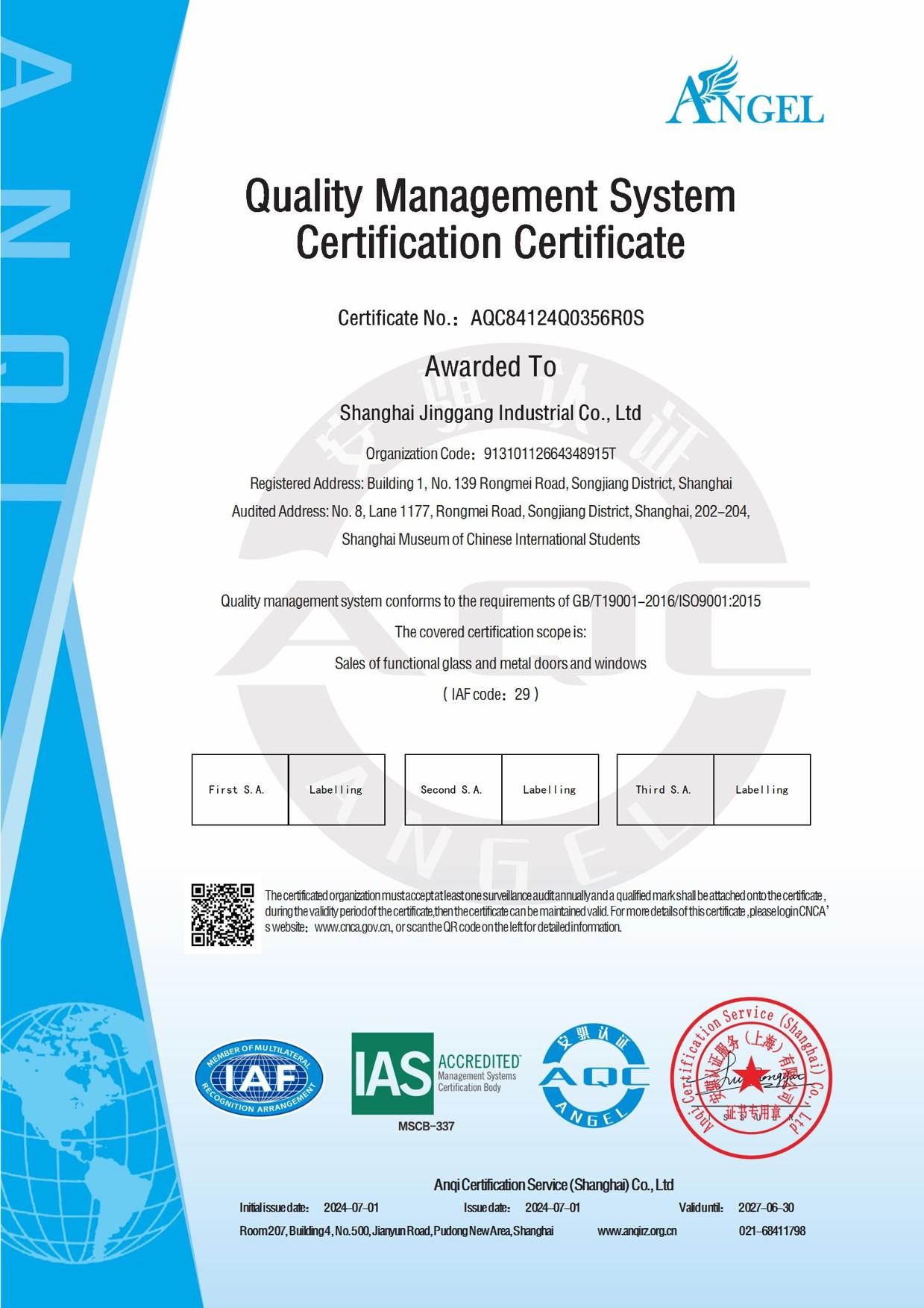 證書類型: GB/T19001-2016/ ISO9001:2015Standard