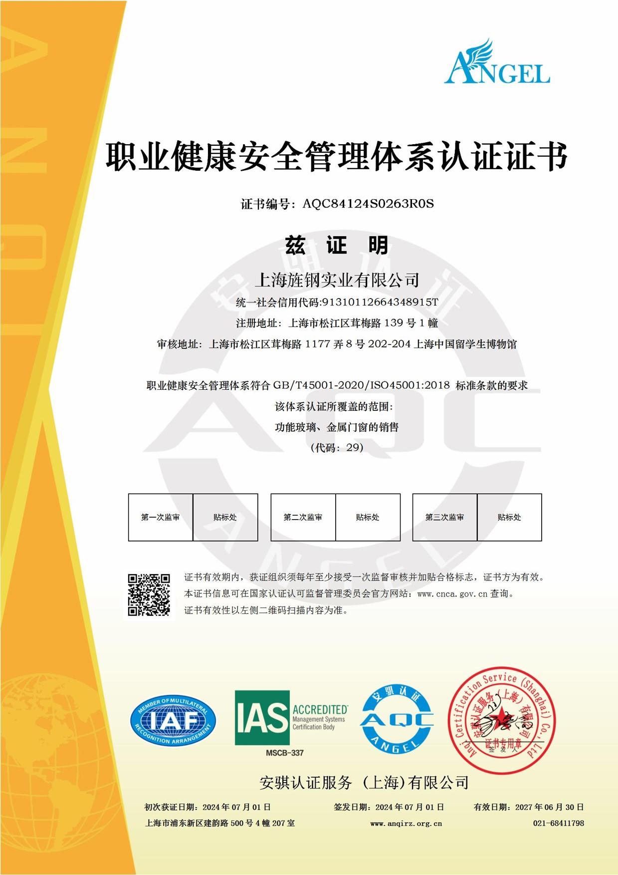 證書類型: GB/T45001-2020 /ISO45001:2018標準