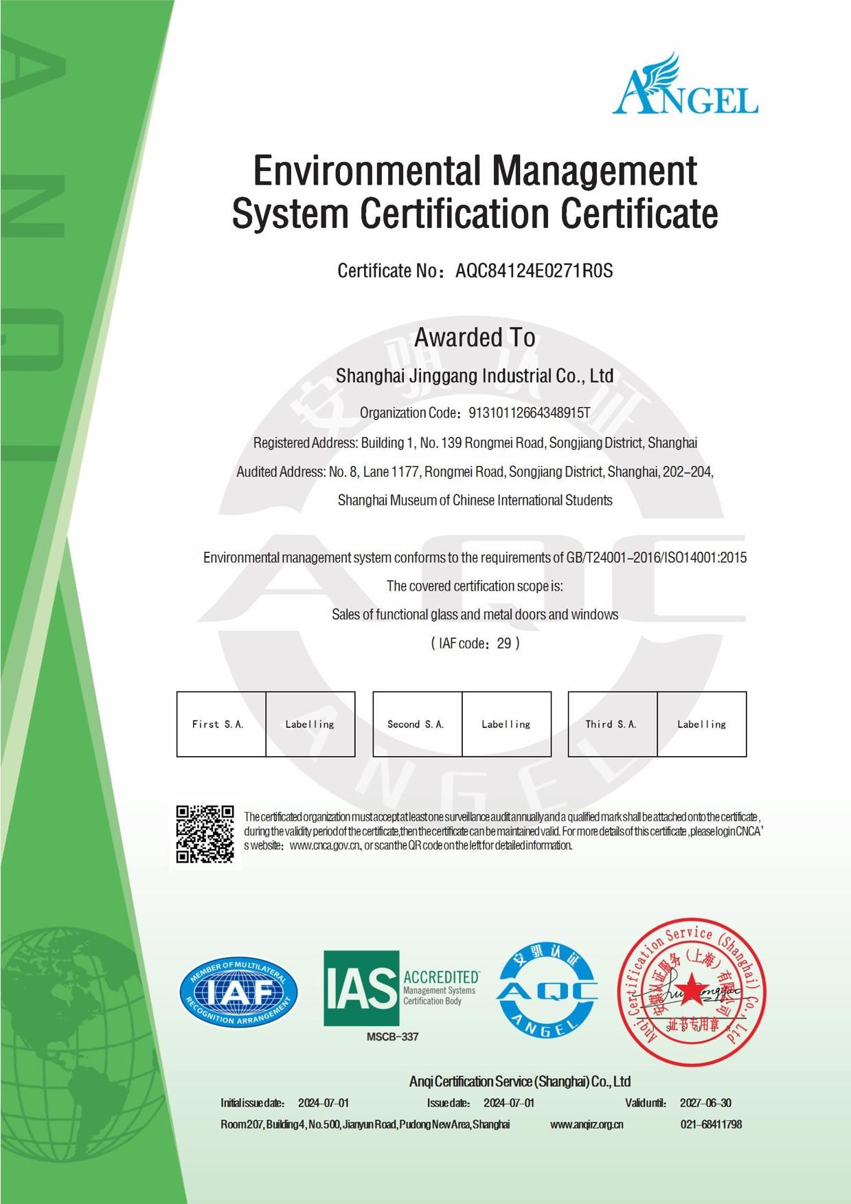 證書類型: GB/T24001-2016/ISO14001;2015 Standard