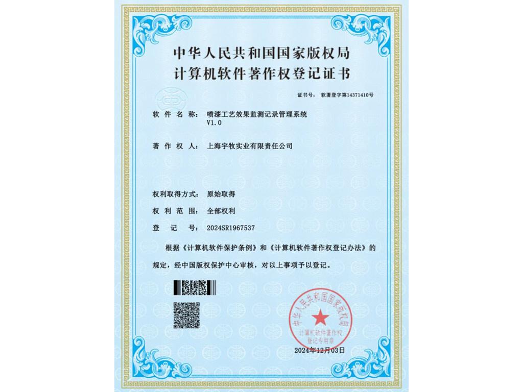 噴漆工藝效果監測記錄管理系統專利證書 |