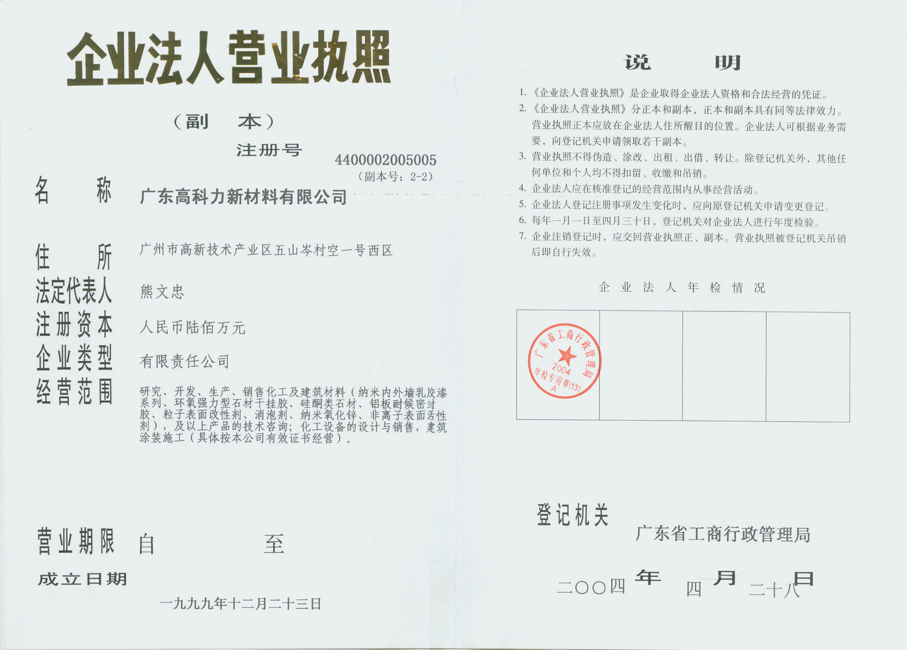 公司名稱:廣東高科力新材料有限公司