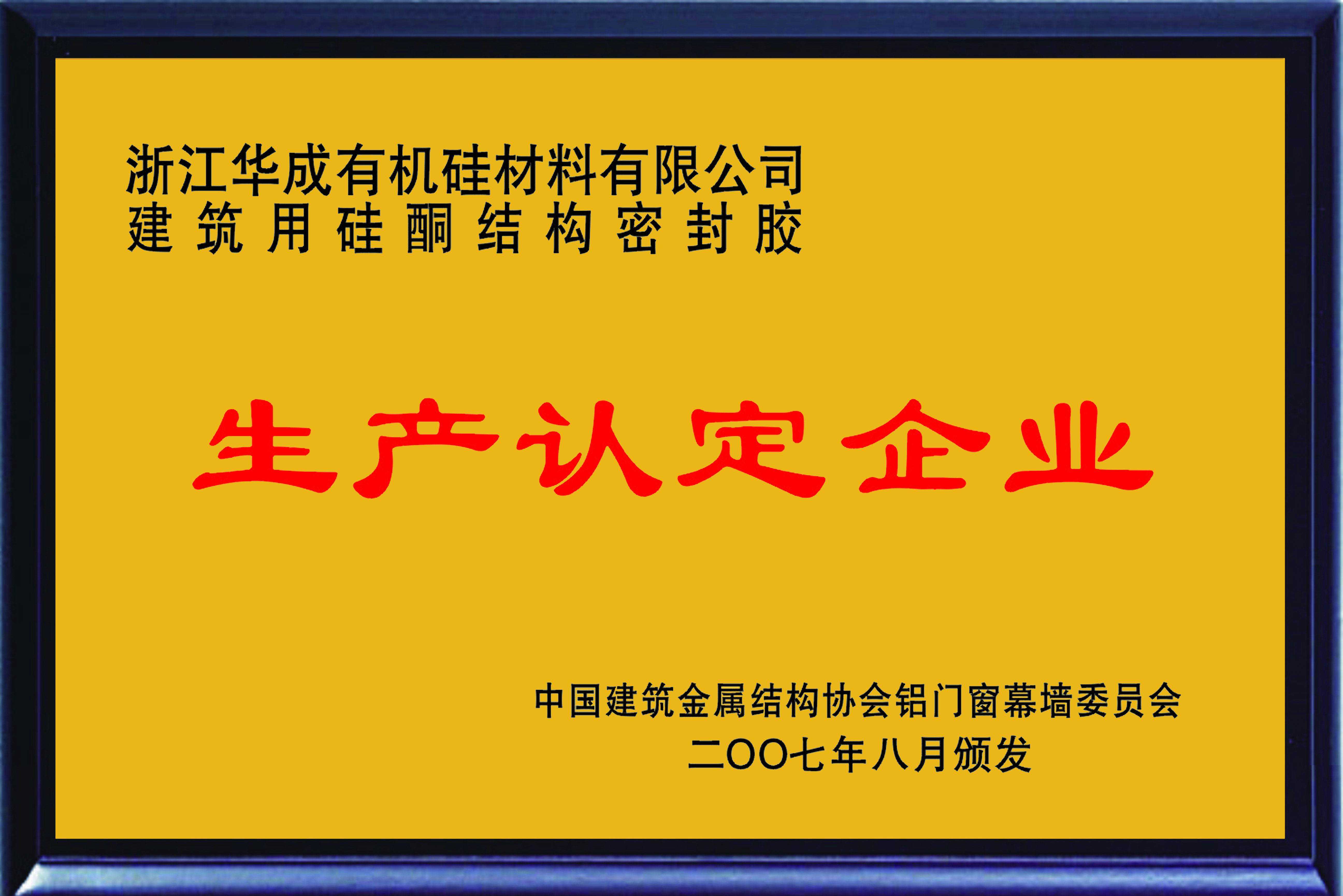 浙江華成有機硅材料有限公司建筑用硅酮結構密封膠生產認定企業 |