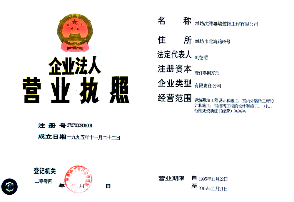 建筑幕墻工程專業承包壹級 |