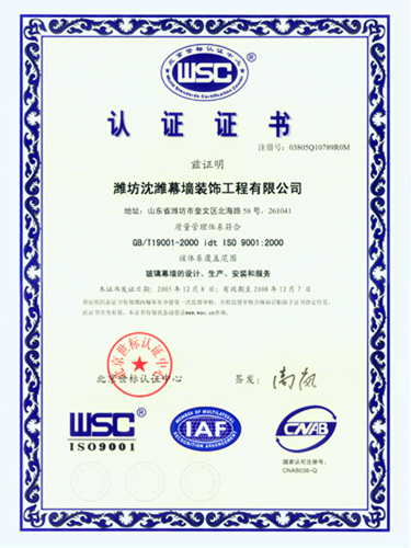 ISO9001-2000質量管理體系認證證書 |