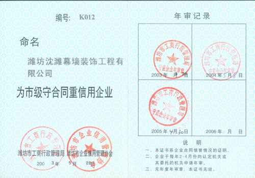 市級守合同重信用企業 |