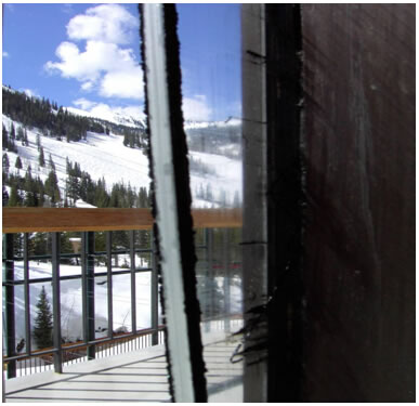 聚氨酯密封膠在建筑幕墻中主要用于非玻璃幕墻的接縫密封,表面可以涂刷涂料,不過經過長期紫外線照射后,其表面會出現龜裂。 聚硫密封膠具有較好的氣密性,主要用于門窗和明框幕墻用中空玻璃的二道密封。不過,聚硫密封膠與玻璃的粘結面經紫外線照射后會出現脫膠的現象,因此在隱框幕墻、點支式幕墻等二道密封膠暴露于陽光下的場合都禁止使用聚硫膠進行中空玻璃的合片。在溫差較大的場合,也建議使用硅酮結構膠作為中空玻璃的二道密封,因為當溫度較低時,中空玻璃內部的負壓會較大,二道密封膠如果對間隔條粘結力不夠,有可能導致間隔條向內滑移,使中空玻璃失效。見下圖。
