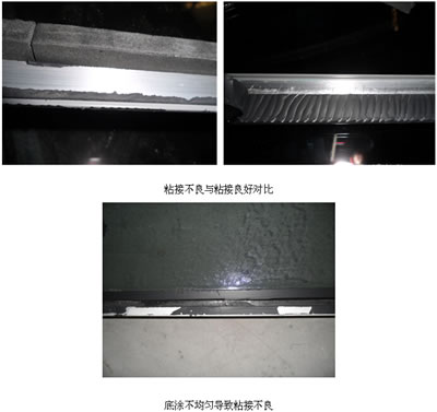 ④雙組份結構膠注膠過程中有混合不勻的現象。解決方法:注膠前通過蝴蝶試驗確認A、B組分混合均勻;