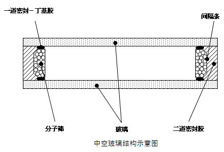 中空玻璃目前已普遍應(yīng)用于商業(yè)寫字樓、大型商場、高層住宅等建筑物的一種節(jié)能玻璃,具有優(yōu)良的隔熱、隔音性能且美觀實(shí)用。中空玻璃是由兩片(或以上)玻璃與鋁合金框架粘結(jié)而成,密封類型主要采用膠條法和膠接法兩種,而目前采用最多的是膠接法密封結(jié)構(gòu)中的雙道密封結(jié)構(gòu),其結(jié)構(gòu)形式如下圖所示:兩片玻璃由間隔條隔開,間隔條與玻璃之間用丁基膠進(jìn)行第一道密封,在間隔條內(nèi)部填充分子篩,玻璃邊緣與間隔條外側(cè)形成的縫隙用二道密封膠進(jìn)行密封。 一道密封膠所起的作用是阻止水氣或惰性氣體進(jìn)出空腔,一般使用丁基膠,因?yàn)槎』z的水氣透過率和惰性氣體透過率都非常低。但是丁基膠本身粘結(jié)強(qiáng)度低,彈性小,必須靠二道密封膠對(duì)整體結(jié)構(gòu)進(jìn)行固定,將玻璃板塊與間隔條粘結(jié)在一起,使中空玻璃在承受荷載時(shí),一道密封膠能保持良好的密封效果,同時(shí)整體結(jié)構(gòu)不受影響。