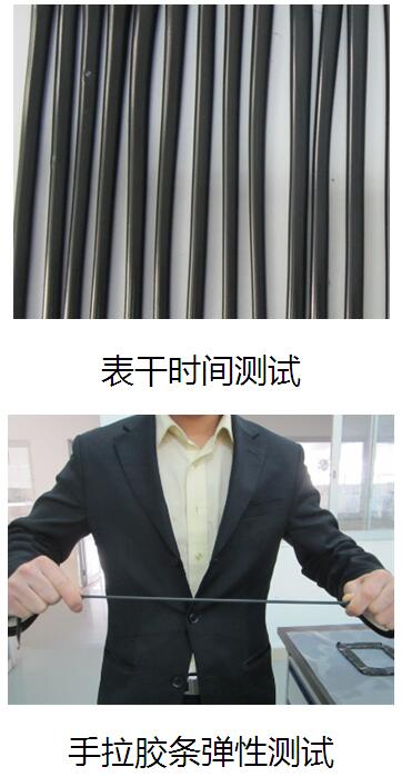 待膠條固化完全后便可進(jìn)行材料彈性測試,用手拉伸已固化的膠條感受其彈性好壞。