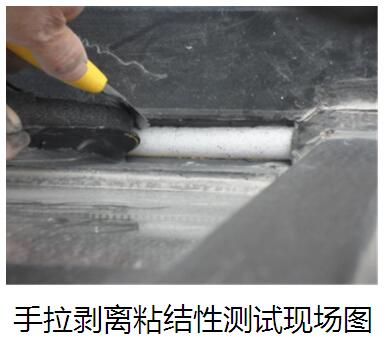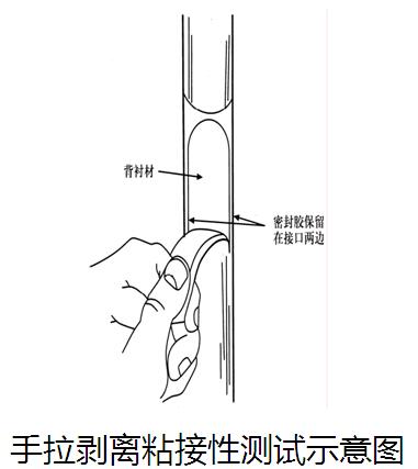 為確保膠與實際工程使用基材能夠粘結(jié)良好,在大面積施工之前應(yīng)進(jìn)行粘接性試驗以確保密封膠與基材粘接良好。在施工過程中,還應(yīng)定期對已固化的密封膠進(jìn)行現(xiàn)場手拉剝離粘結(jié)性測試,檢查膠的外觀、固化和粘結(jié)情況。