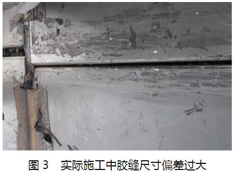 3. 實際板塊的安裝尺寸偏差過大,部分膠縫太窄。如圖3;