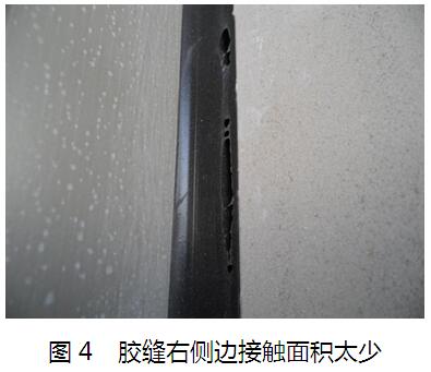 4. 施膠厚度不符合規范要求,太薄,或者接觸面積太少。如圖4;