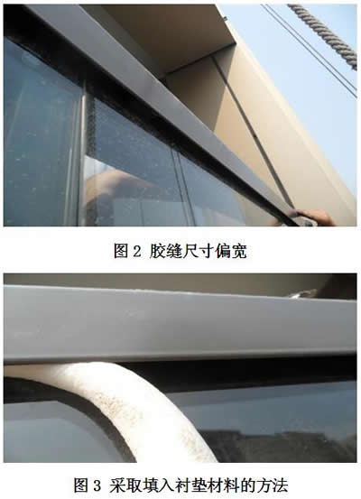 2. 如果膠縫確實偏寬,應填入合適的襯墊材料,控制好注膠厚度(見圖2、圖3)。