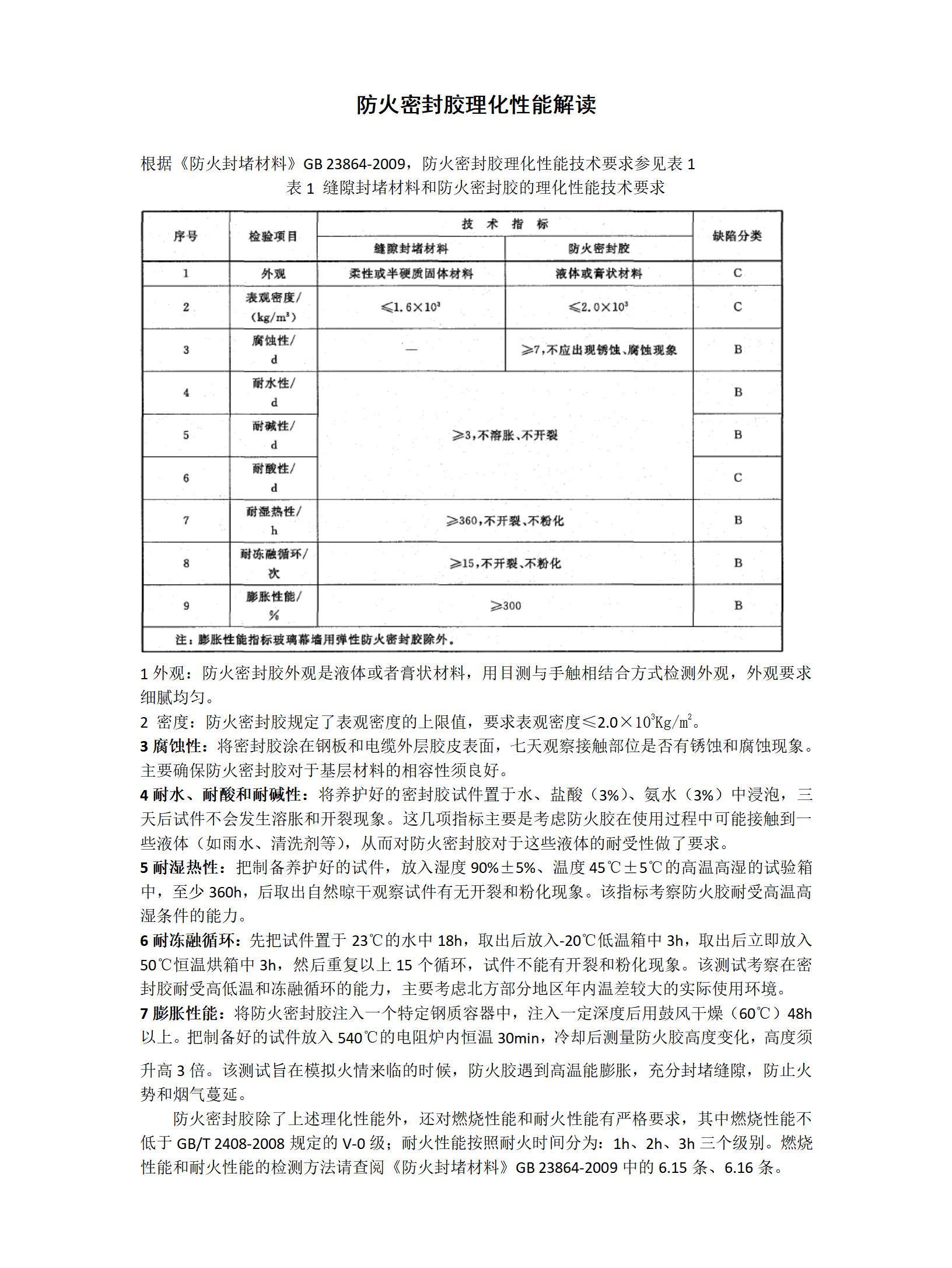 防火密封膠物理化性能解讀