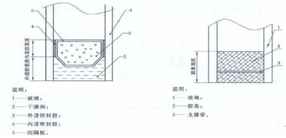 第一道密封膠指丁基密封膠,要求寬度應≥3㎜。第二道密封膠通常為聚硫膠或者硅硐膠,要求寬度應≥5㎜;隱框、半隱框中空玻璃二道密封膠(硅酮結構密封膠)的粘結寬度應根據JGJ102《玻璃幕墻工程技術規范》進行計算。復合密封膠條是代替一道和二道密封膠來使用的,要求寬度為8±2㎜。 中空玻璃一道密封膠層寬、二道外層密封膠層厚、膠條密封膠層寬見下圖