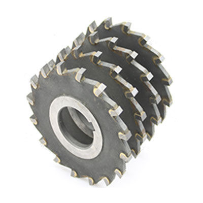 三面刃銑刀簡稱三面刃:三個刃口均有后角,刃口鋒利,切削輕快。三面刃銑 刀是標準的機床刀具,通常在臥床上使用,一般用于銑溝槽和臺階。其形狀就像吃的“燒餅 中間有一個圓孔”其外圓,和兩個端面靠近外圓的部位都有切削刃(像寬鋸齒狀)所以叫三 面刃。三面刃銑刀的主切削刃分布在銑刀的圓柱面上,副切削刃分布在兩端面上。使用時將 刀安裝在臥銑的刀桿上,當然也可以安裝在其它機床上,一般用于銑溝槽和臺階。