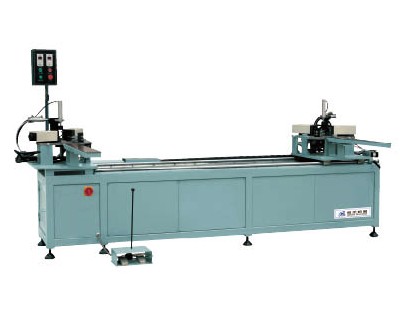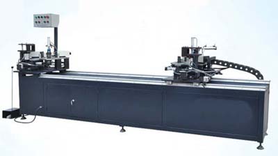 鋁門窗雙頭組角機是高檔鋁門窗專用設備,可一次完成兩個角的角碼式?jīng)_鉚聯(lián)接。