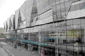 智能玻璃幕墻從設計構(gòu)思、內(nèi)容組成和工作過程各方面看,都是一個各專業(yè)協(xié)調(diào)合作的多功能系統(tǒng),它與傳統(tǒng)玻璃幕墻有很大差別,不僅有玻璃支撐結(jié)構(gòu),還包括建筑內(nèi)部分環(huán)境控制和建筑服務系統(tǒng),通過智能玻璃幕墻可以控制室外光線,提供通風。由于智能玻璃幕堵為3層玻璃,外側(cè)為全封閉式,可大大減少外界噪聲對建筑內(nèi)部的干擾。