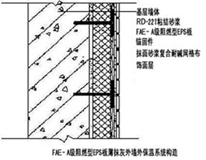 FAE-A級防火蜂巢隔離保溫板是在傳統的模塑聚苯乙烯泡沫板的基礎上進行改良,從而達到A級阻燃效果的新型保溫隔熱材料。它不僅延續了傳統EPS泡沫板導熱系數小,保溫隔熱效果好,輕質等優點,并彌補了傳統EPS泡沫板阻燃效果差的缺點,同時克服了市場上同類阻燃效果材料質量重、價格高的問題,是一種理想的保溫隔熱材料,具有廣泛的市場需求。 EPS保溫板產品特點 1、保溫隔熱節能效果好 A級防火EPS保溫板延續了傳統EPS泡沫板導熱系數小,蓄熱系數大的優點,比市場上無機活性保溫砂漿、泡沫玻璃等保溫效果好。 2、安全、防火—A級阻燃型材料 A級防火EPS保溫板克服了傳統EPS泡沫板易燃的缺點,安全性能非常高。完全達到公安部與住房和城鄉建設部聯合下發的公通字[2009]46號文件所規定的保溫材料A級防火標準。 3、A級防火EPS保溫板強度比巖棉、酚醛板高,不吸水、不脫落、易施工。 4、系統性能優越 A級防火EPS保溫板是閉合且發泡的球狀分子結構,重量相對較輕,尺寸穩定性好,無毒,系統經耐候性實驗,即經過80次高溫-淋水循環和30次加熱-冷凍循環后,未出現飾面層起泡、空鼓和脫落現象,未產生滲水裂縫,抗沖擊性能面磚達到10J,抗沖擊性能涂料達到10J,性能優越。 5、工藝成熟 A級防火EPS保溫板施工工藝與傳統的EPS板薄抹灰外墻外保溫系統施工工藝相同,施工工藝成熟,便于工人施工,且安全可靠,不會存在其他新型材料系統不穩定的缺陷。 6、性價比優越 A級防火EPS保溫板保留了傳統EPS泡沫板的“導熱系數低、保溫效果好、工藝成熟”的優點,并且成本低廉,價格遠遠低于市場上同類A級阻燃型保溫材料,以普通材料的價格獲得A級阻燃的效果,性價比優越,市場前景廣闊。 EPS保溫板系統構造 A級防火EPS保溫板薄抹灰外墻外保溫系統,是由RD-221粘結砂漿為粘結層、A級防火EPS保溫板為保溫層、RD-221抹面砂漿復合耐堿網格布為保護層組成的外墻外保溫系統。構造如下: