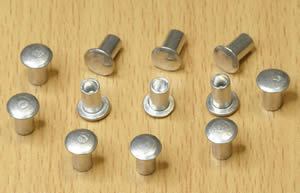 鉚釘:在鉚接中,利用自身形變或過盈連接被鉚接件的零件。鉚釘種類很多,而且不拘形式。 1種類及用途 常用的有R型鉚釘、風扇鉚釘、抽蕊鉚釘(擊蕊鉚釘)、樹形鉚釘、半圓頭、平頭、半空心鉚釘、實心鉚釘、沉頭鉚釘、抽芯鉚釘、空心鉚釘,這些通常是利用自身形變連接被鉚接件。一般小于8毫米的用冷鉚,大于這個尺寸的用熱鉚。但也有例外,比如三環鎖上的銘牌,就是利用鉚釘與鎖體孔的過盈量鉚接的。 R型塑料鉚釘也稱膨脹鉚釘,由塑料子釘和母扣兩部分組成。其在安裝時無須使用安裝工具,將安裝底座放置在光滑的孔中,然后按下頭部,特殊設計的腳受力后膨脹撐開,牢牢鎖定于被安裝面。它常用于連接塑料殼體、輕質板材、絕緣材料、電路板、或其他任何輕薄、質量輕的材料,美觀實用,使用方便。